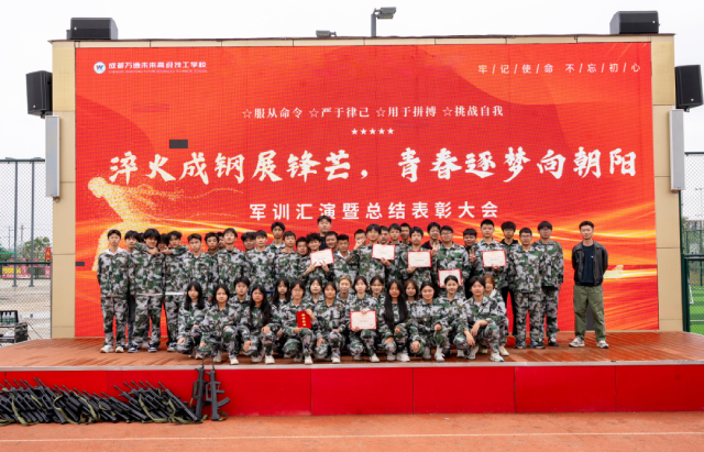汇演结束后,学校领导宣读了表彰决定,对在本次军训中涌现出的“优秀连队”、“训练标兵”等进行了表彰。成都万通爨助在总结讲话中,向承训教官表示衷心感谢,向圆满完成军训任务的全体同学致以热烈祝贺。他勉励同学们,要将军训中培养的爱国情怀、纪律观念、拼搏精神和优良作风融入到未来的学习生活中,以工匠精神严格要求自己,在成都万通的舞台上苦练技能、扬帆起航,成为德技并修的高素质技术技能人才。
